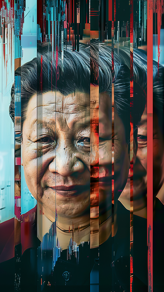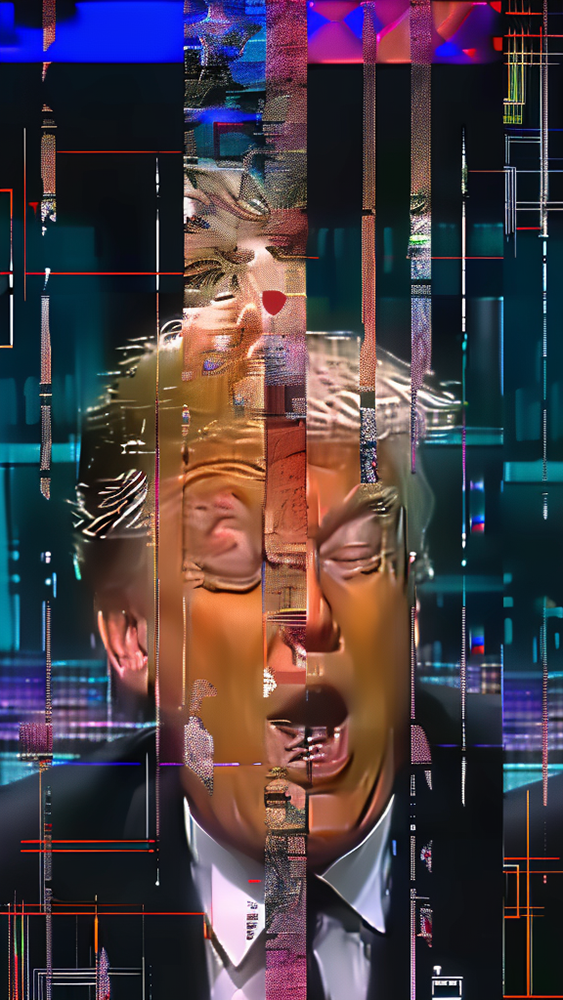 The Prerogatives of Power is a multi-screen installation that displays AI generated glitch portraits of political leaders from around the world (Putin, Trump, Zelensky, Xi Jinping, etc). The AI diffusion models result in portraits based on a fusion of many sources and the output images are fed backed into the AI image generator for multiple iterations producing the final result. This series is a critique and warning of the use and abuse of power by authoritarians the world over. The Prerogatives of Power is inspired by Antonio Muntadas’ 1987 installation “The Board Room” and by portrait studies by Frances Bacon.